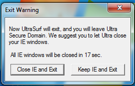 Just click on exit button on the utility interface. you will be asked to close your browser. In built in fashion Ultrasurf can only work with Internet explorer but you can extend this to Firefox. If you are a Firefox user; just install this add-on;